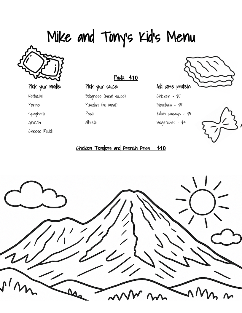 All entrees come with penne pasta with a creamy tomato sauce, sautéed veggies, and your choice of home made minestrone soup or house salad w