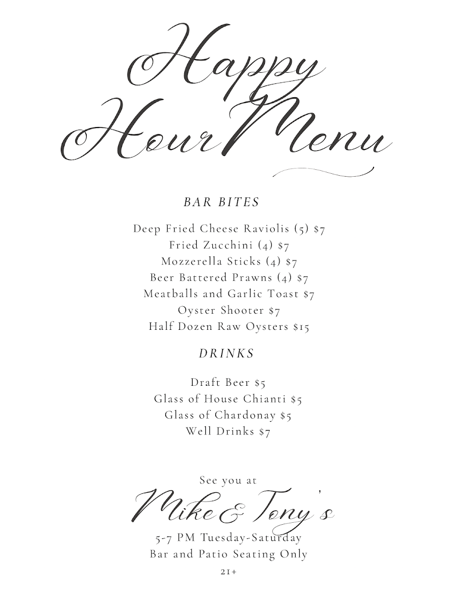Lightly floured chicken topped with a lemon, white wine, butter and caper sauce - $21 in house or To-Go $18